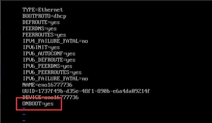 进入编辑模式,将 ONBOOT=no 改为 ONBOOT=yes,就OK